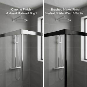- Finish Options: Shower doors sliding are available in finishes like chrome, brushed nickel, or matte black, allowing you to coordinate with your faucets, towel bars, and other fixtures.