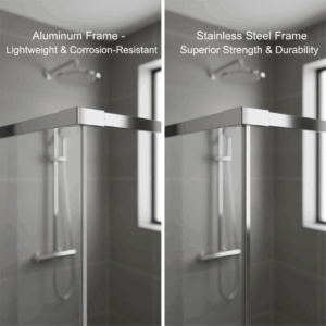 - Glass Thickness: Most shower doors sliding use tempered glass ranging from 6mm to 10mm. A 6mm option is lightweight and affordable, while 8mm or 10mm glass provides sturdiness and a more premium feel.