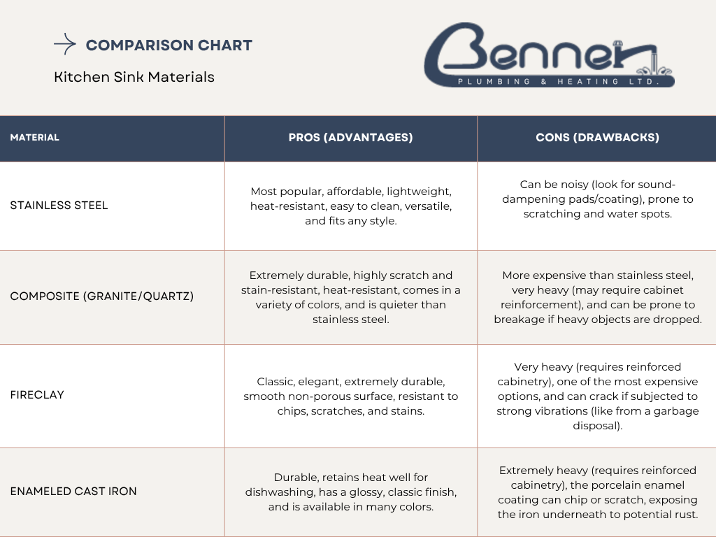 Choosing the right sink is only half the battle; proper installation is key to a long, leak-free life. At Benner Plumbing, we specialize in the expert installation of all kitchen sink materials and types, ensuring your new sink is perfectly fitted, sealed, and plumbed.