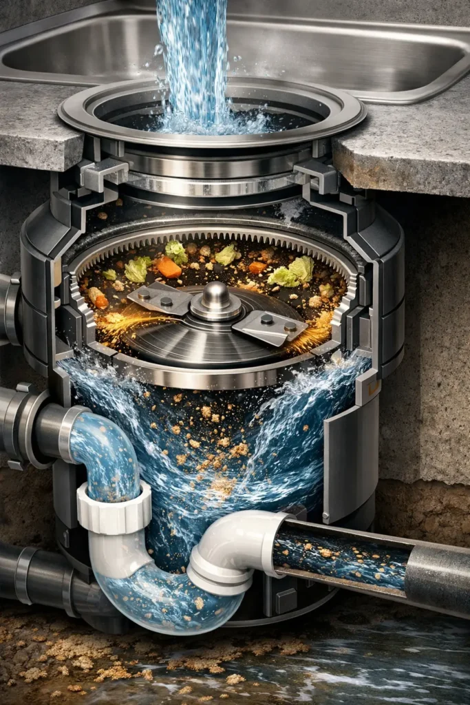 When you turn on the switch, a high-speed motor spins a circular turntable. Centrifugal force pushes food waste against a stationary “grind ring.” This ring has sharp, tooth-like edges that shred the food into liquefied particles—almost like a cheese grater for organic waste. Once the food is broken down into tiny particles (usually less than 2mm), it is washed away by a stream of water through your plumbing and into the municipal sewer system.